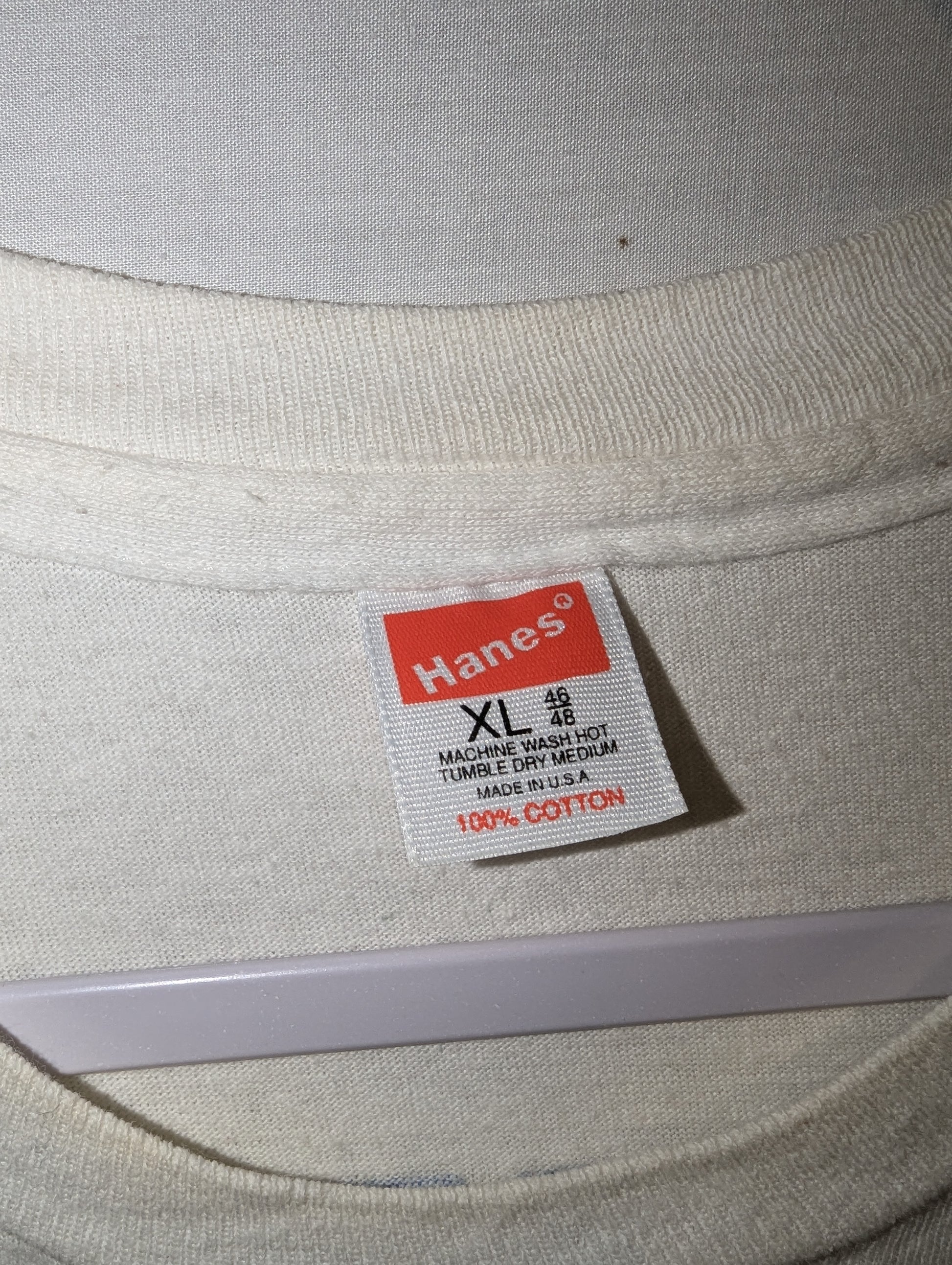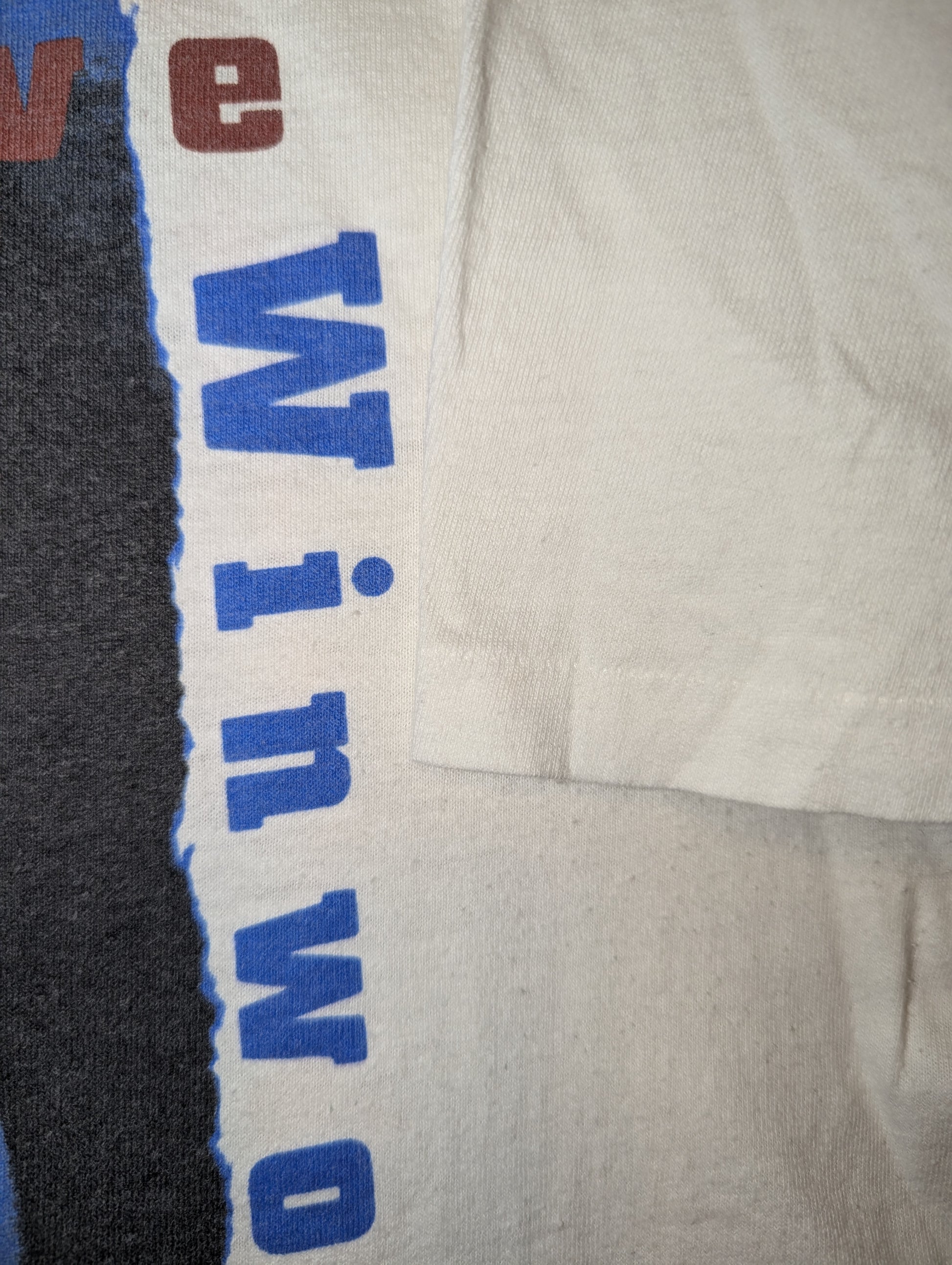 Description: Vintage 1991 Steve Winwood tour shirt, Refugees of the heart, front and back graphic, white salmon and blue, Little puff print heart on the front, Music band concert tour tee