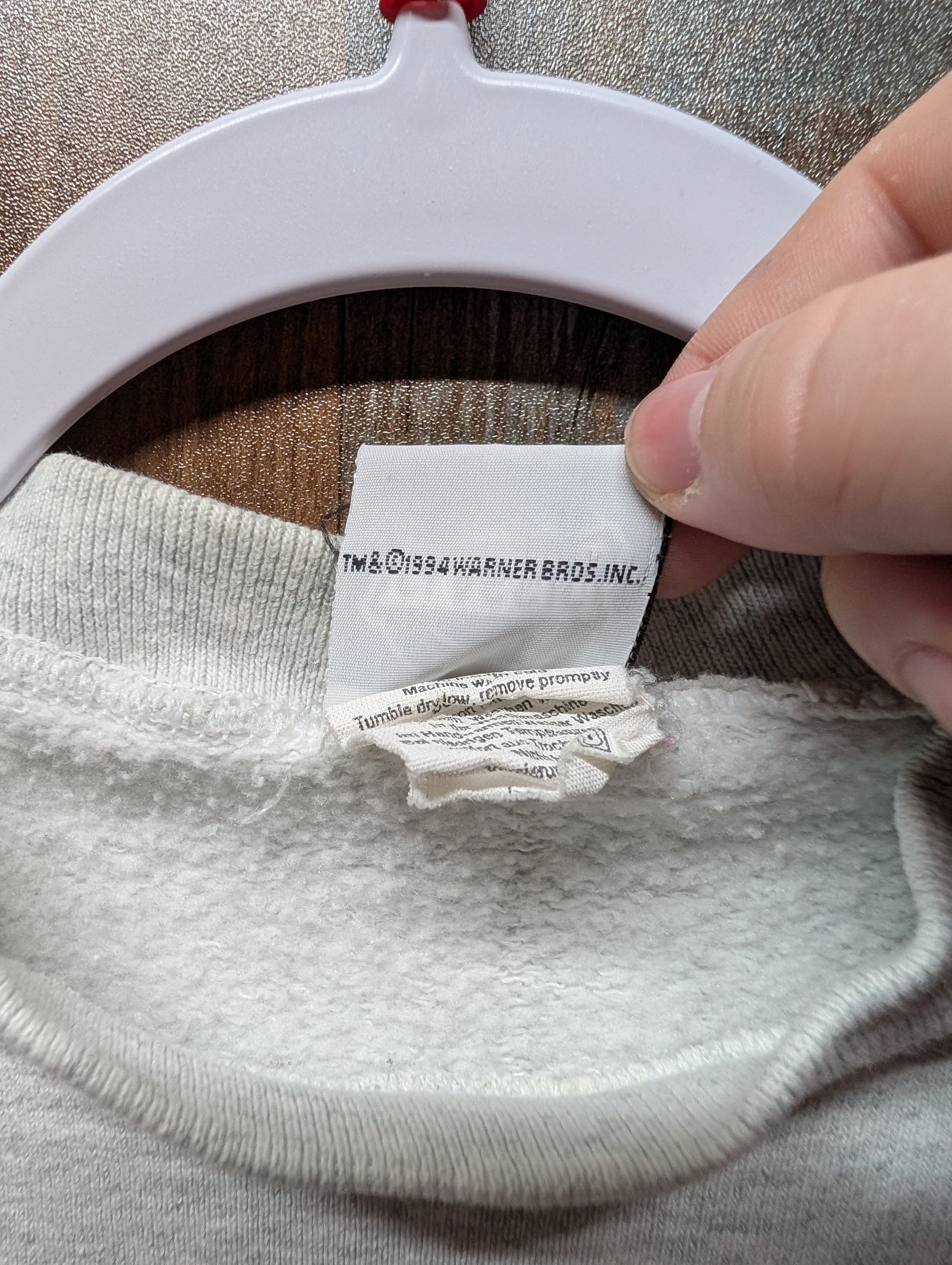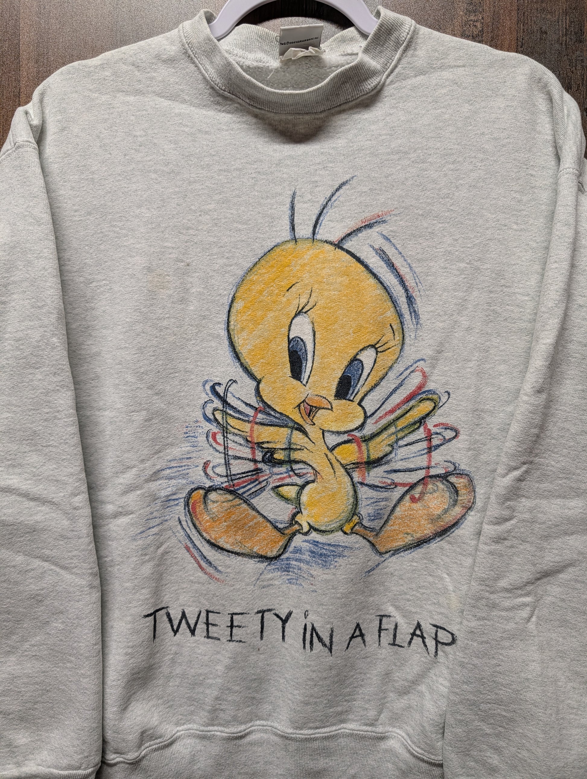 Description: Vintage 1994 Tweety Bird Looney Tunes Crewneck Sweatshirt, front graphic only, gray yellow and black, cartoon, animation, cute design,