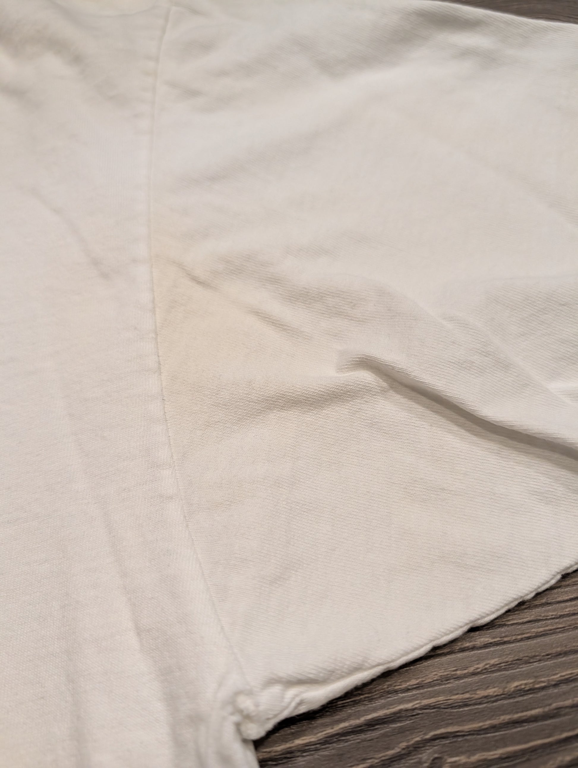 Condition: pit staining and on hem, the collar has wear, small hole in the pit