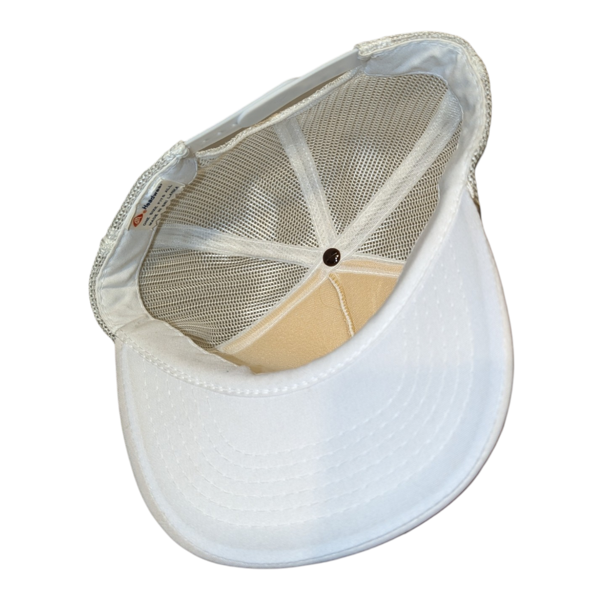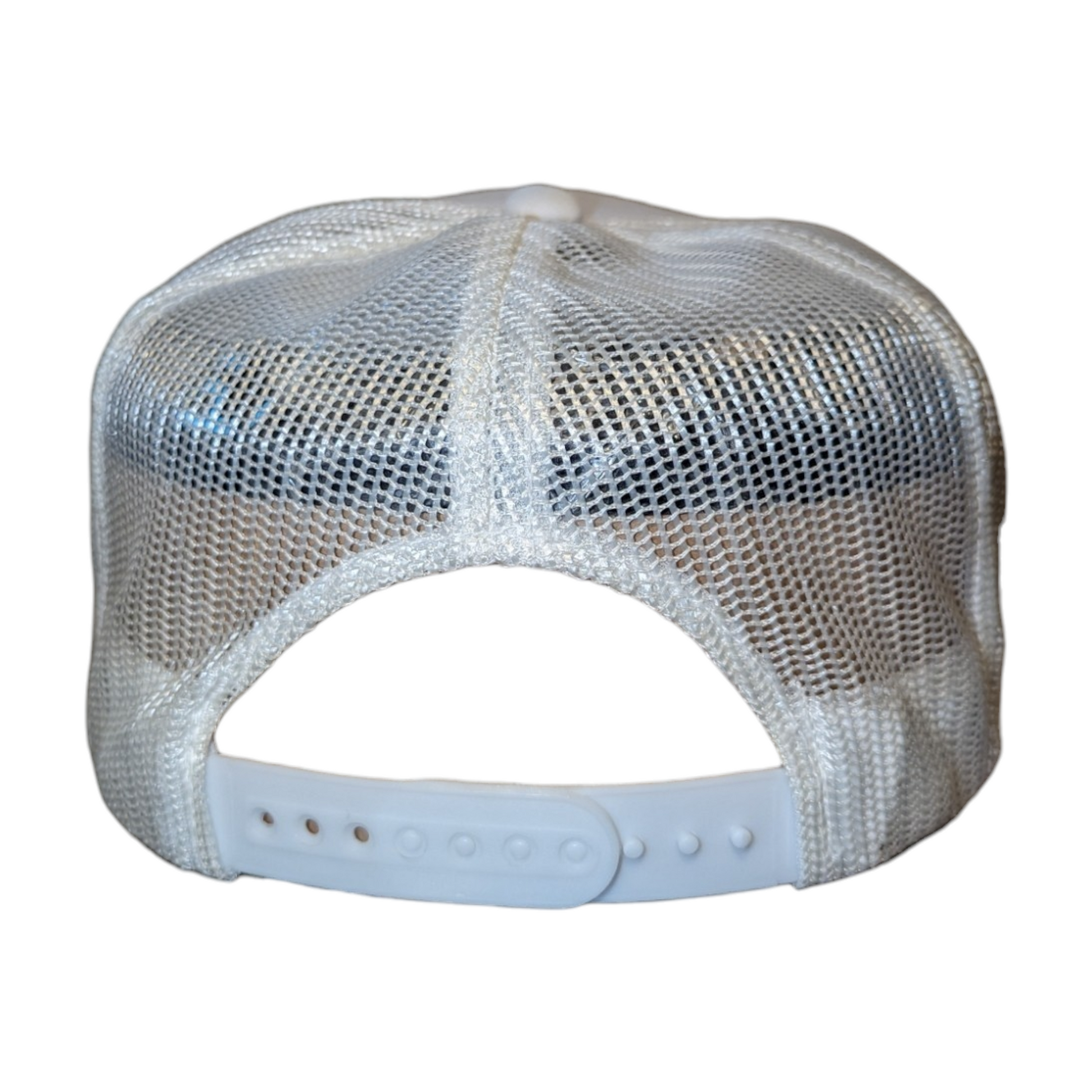 Description: Vintage 80s Dick Tracy Disney Trucker Snapback hat, white red and yellow, foam front, mesh back, Disney Movie, Madonna