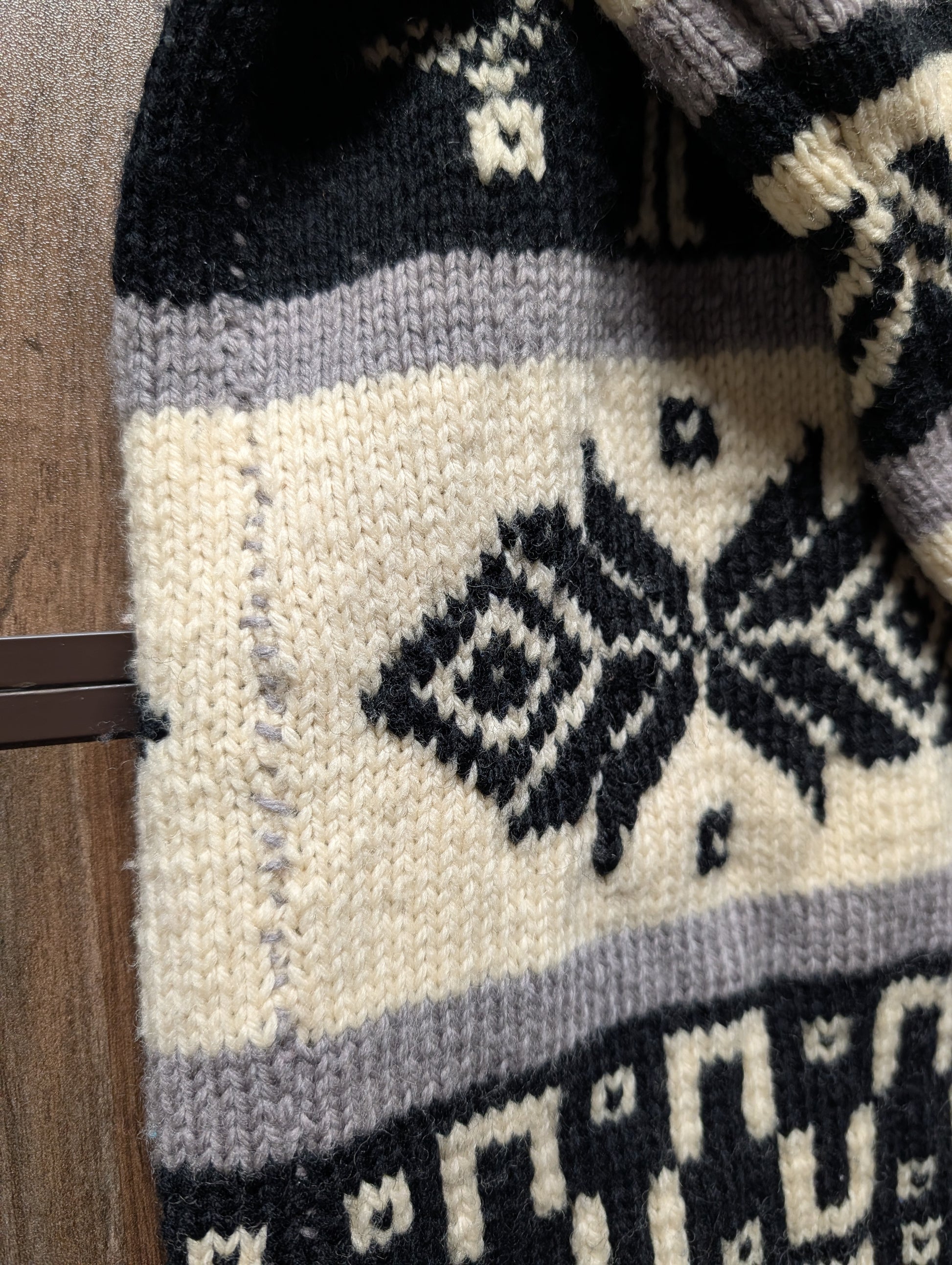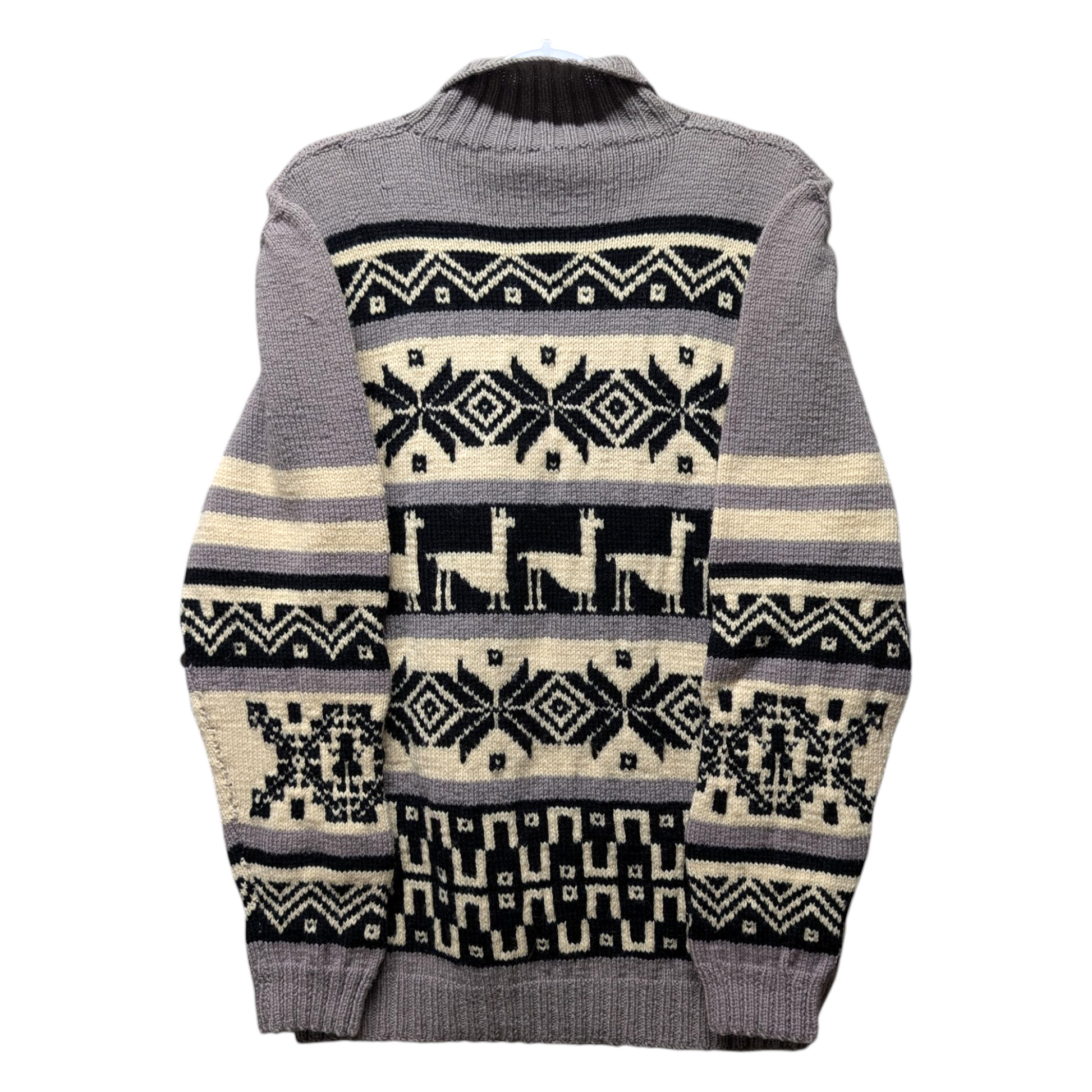 Description: Vintage 80s Hand Knit Alpaca Sweater, Mock neck, Tan black and gray, a bunch of little Alpacas or Lamas in the design, Peruvian style, perfect for Winter cold months, cute Lamacore, Alpacacore, oversized