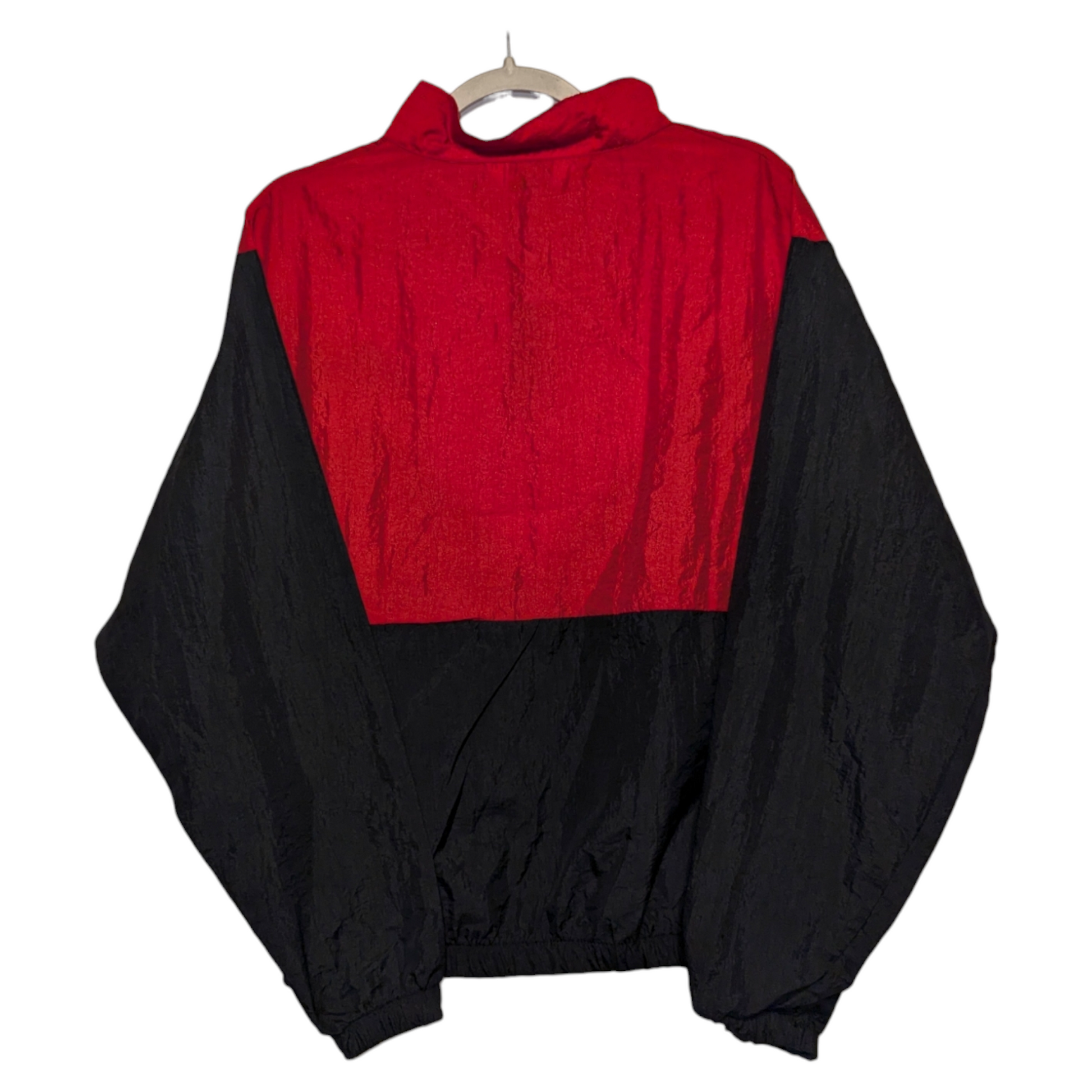 Description: Vintage 90s Golf Windbreaker jacket, front graphic only, embroidered chest hit, red black and white, v cut color block, sports pull over, side pockets