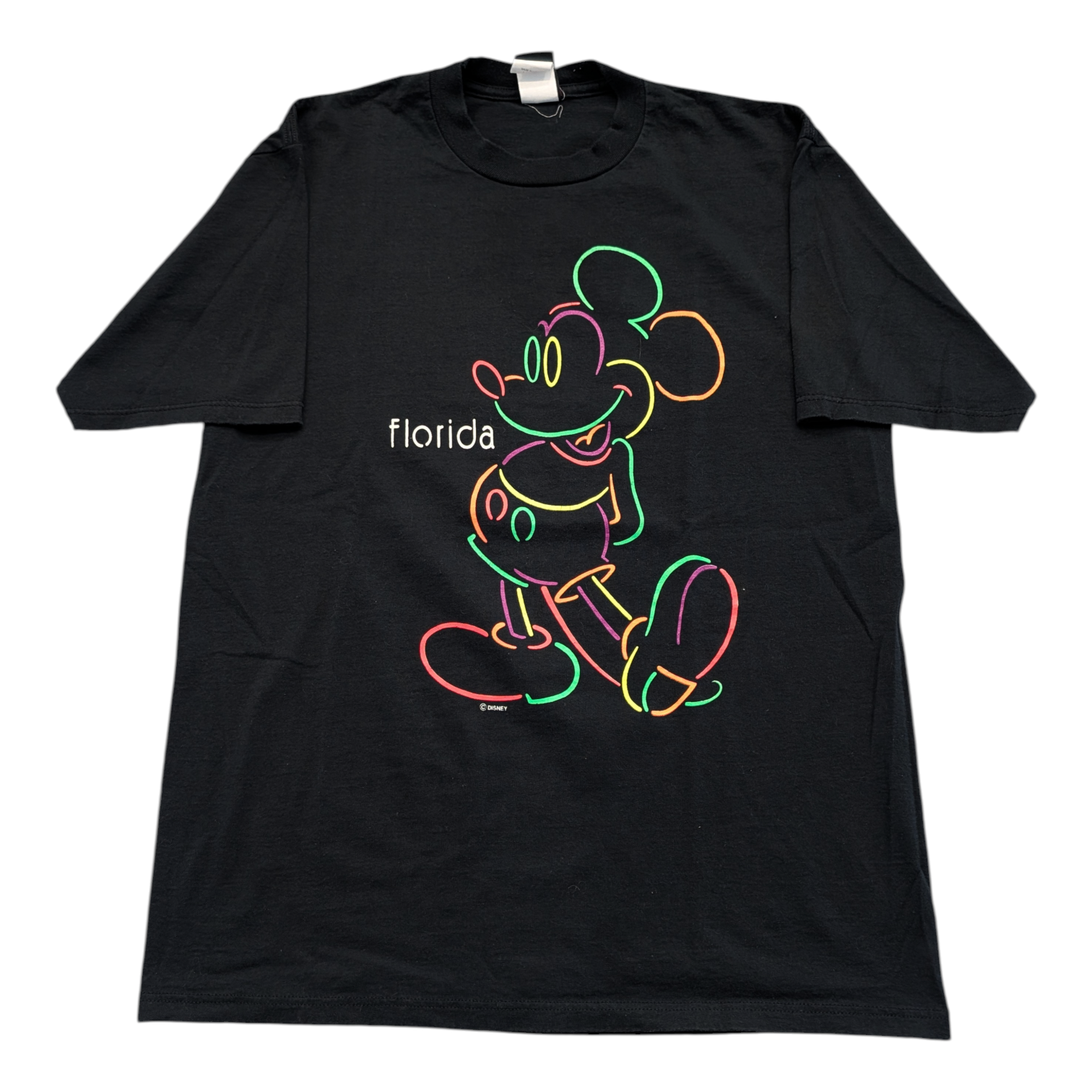 Description: Vintage 90's Neon Mickey Mouse T shirt, Black, Orange Green and purple, Disney, Florida, Location, Theme Park, Cartoon,