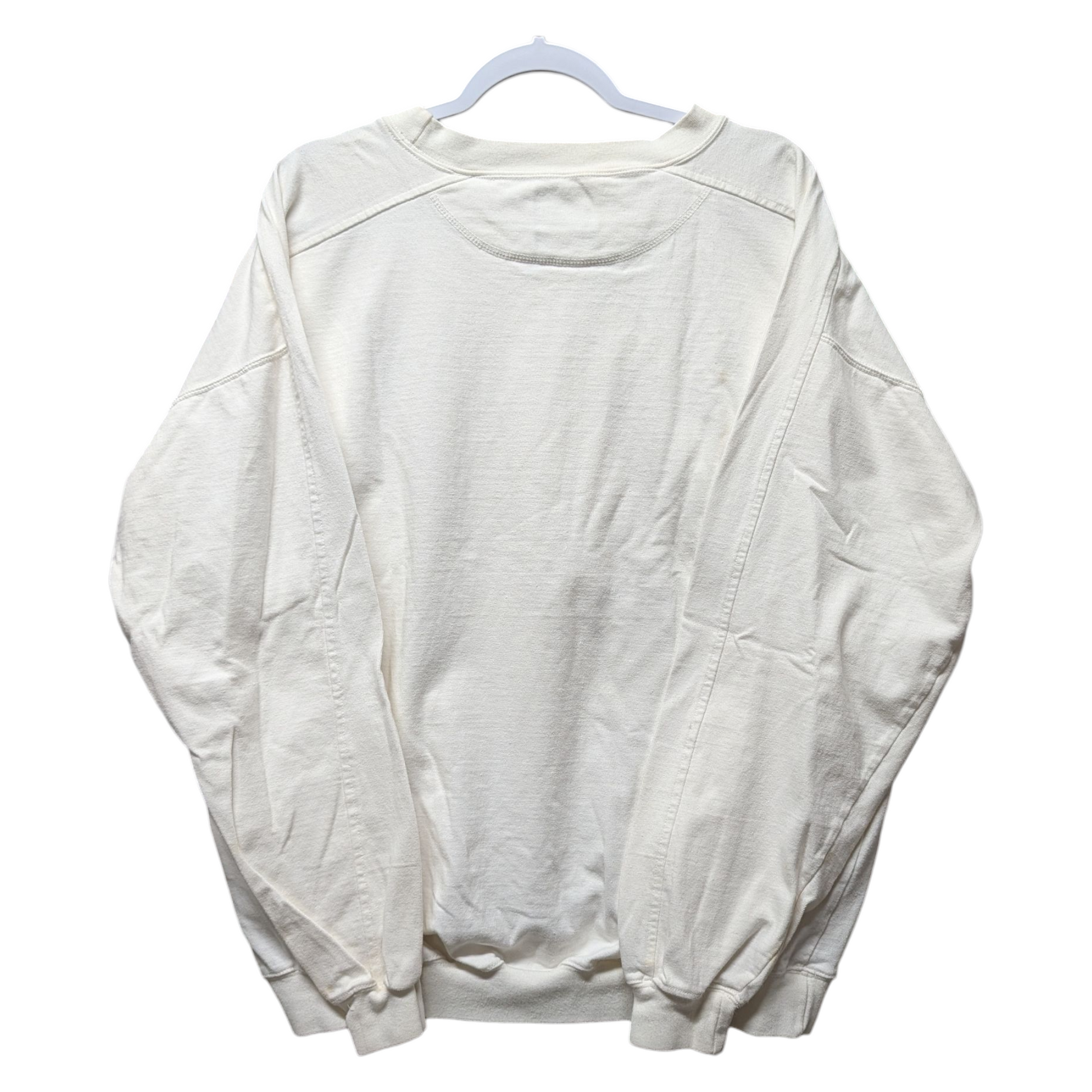 Description: Vintage 90s St Johns Fisher College Crewneck Sweatshirt, thin sweatshirt, front graphic only, white red and yellow, classic school crest logo design, spellout, school spirit, great for Fall weather