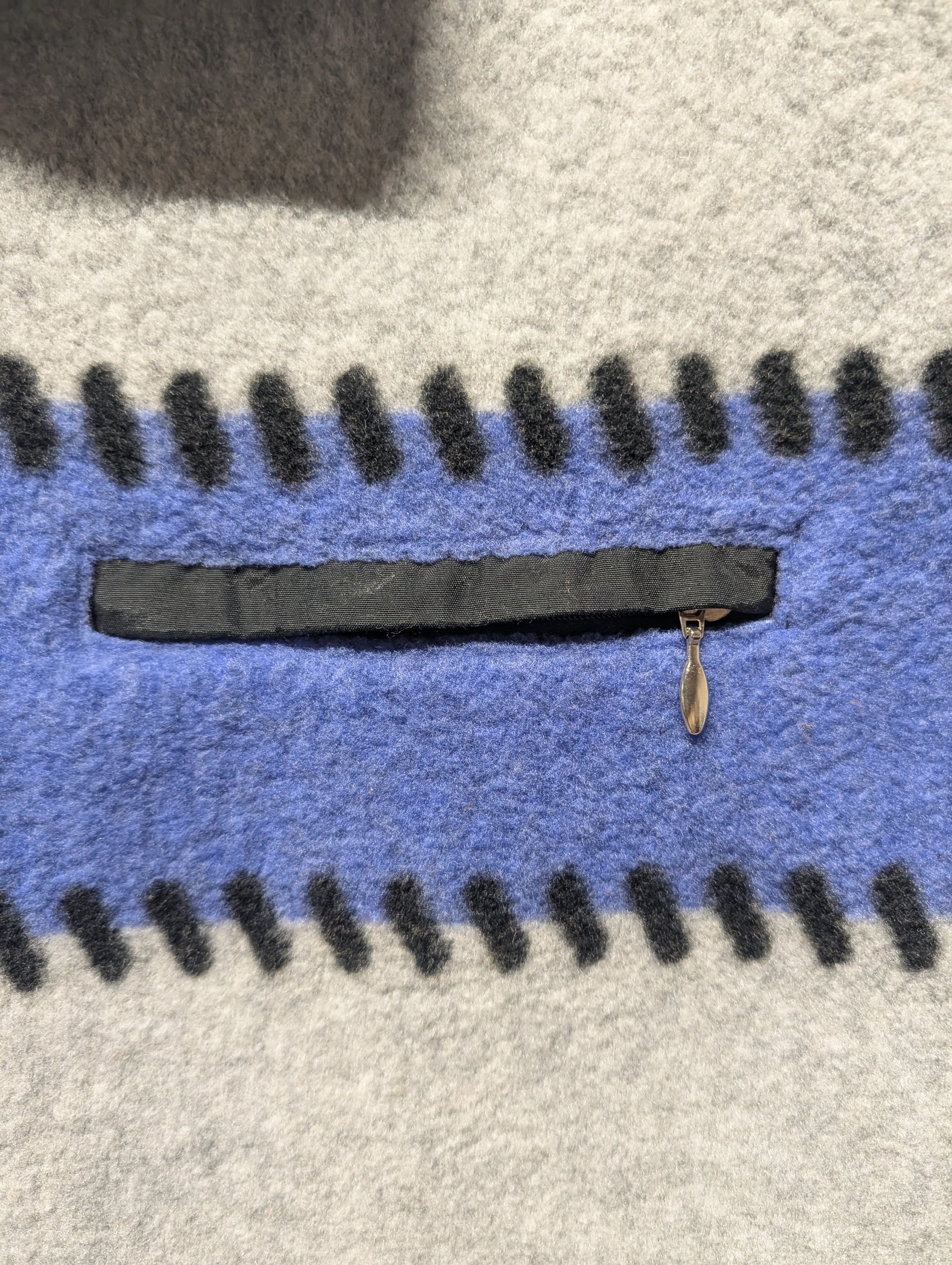 Description: Vintage 90s Abstract pattern Fleece Zip Up Vest, all over print design, blue and gray, perfect for Fall and winter months, great for layering, stitch like design, Has side pockets and zip up pocket on the chest, great for outdoors and hiking