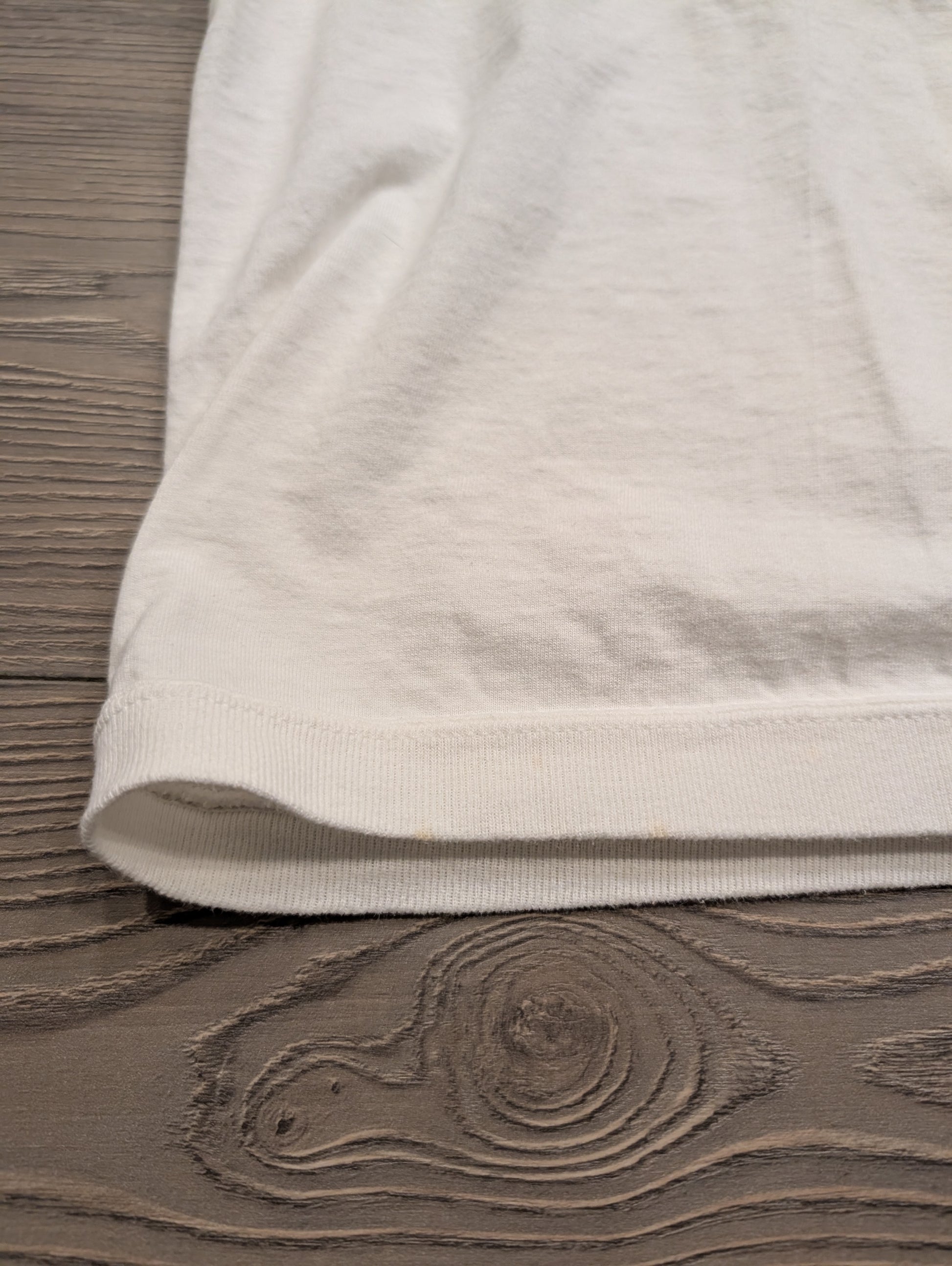 Condition: good, clean white but does have some small faint marks on the front right and some on the lower back by the hem on the right and left.