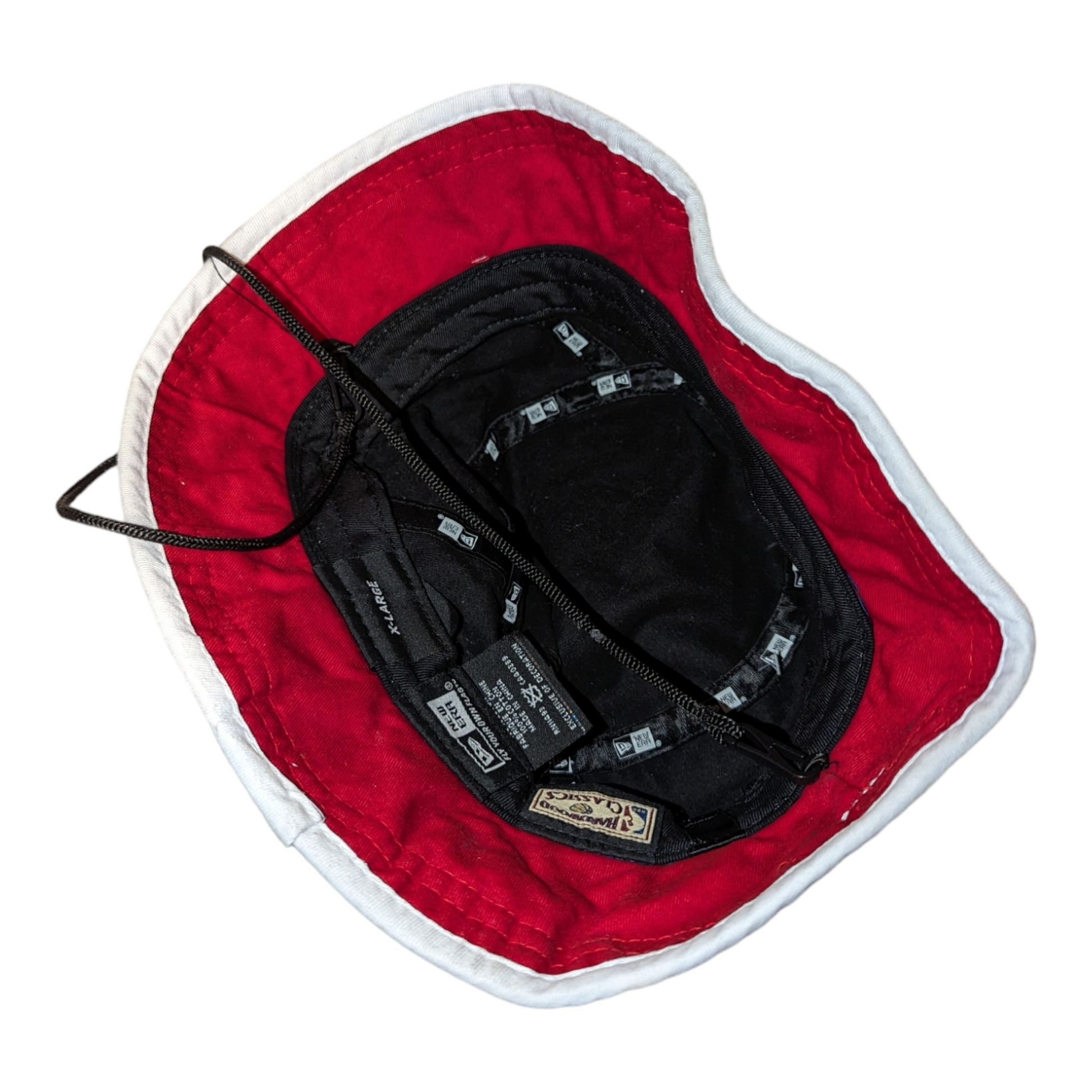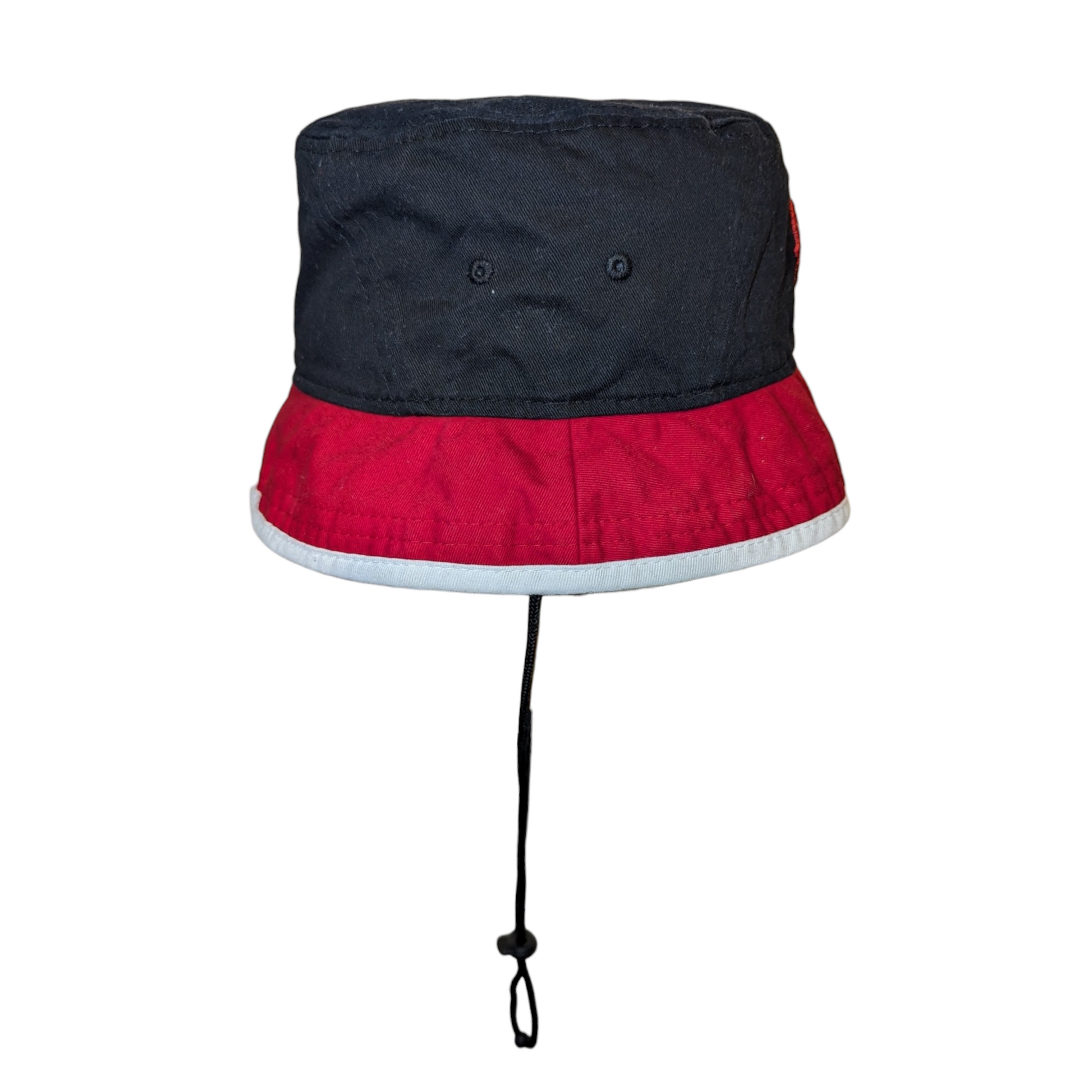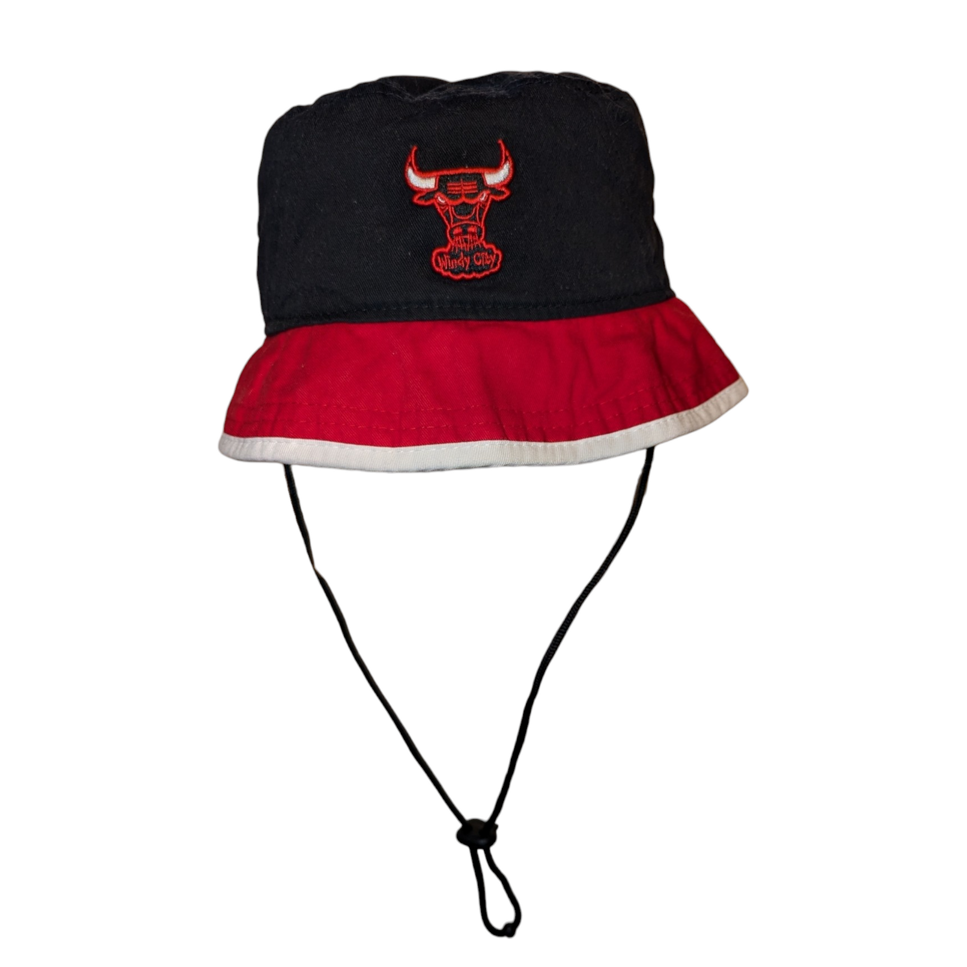 Description: Modern New Era Chicago Bulls Bucket Hat, Hardwood Classics NBA cap, draw string under neck, black red and white, basketball sports hat