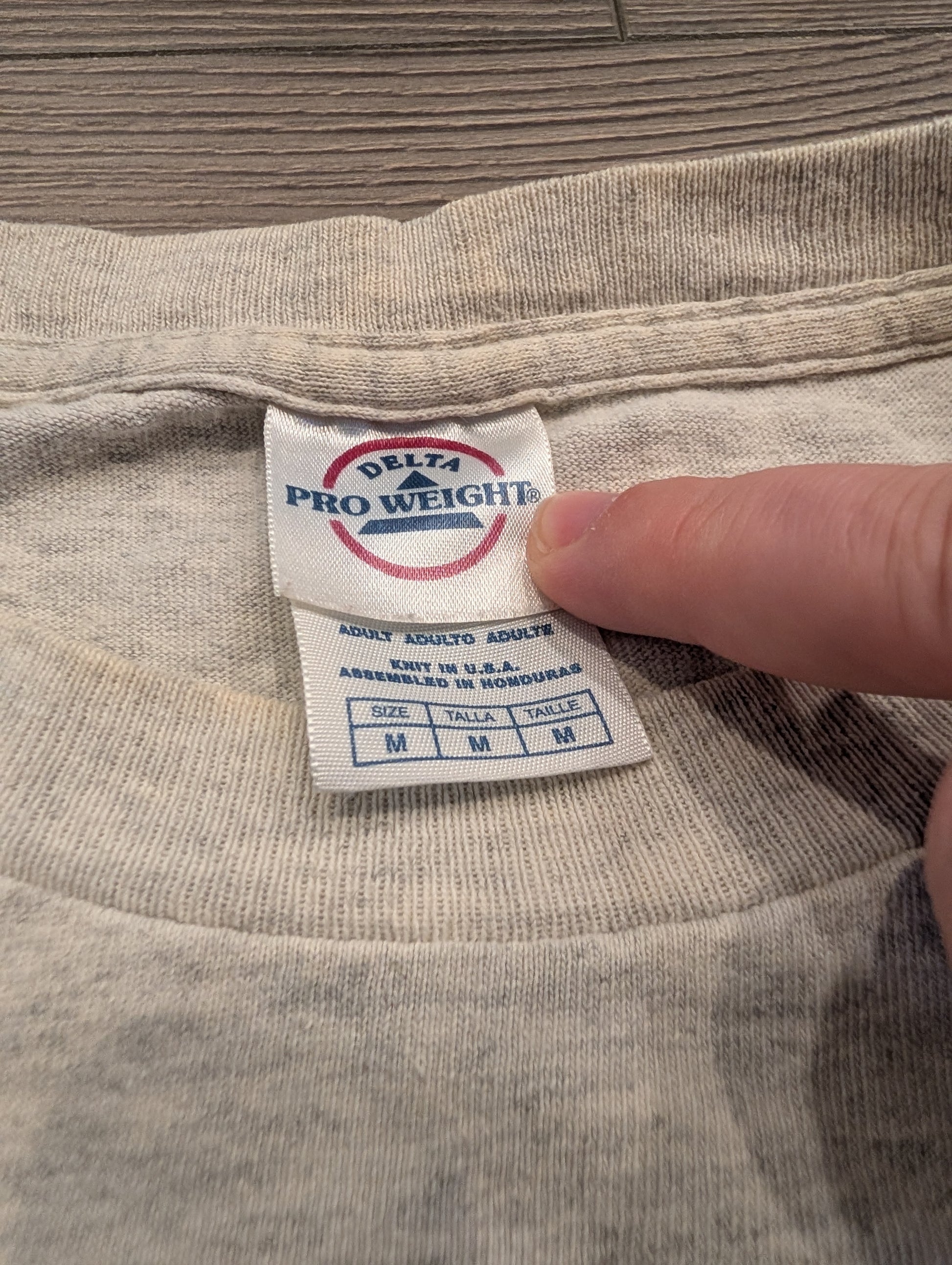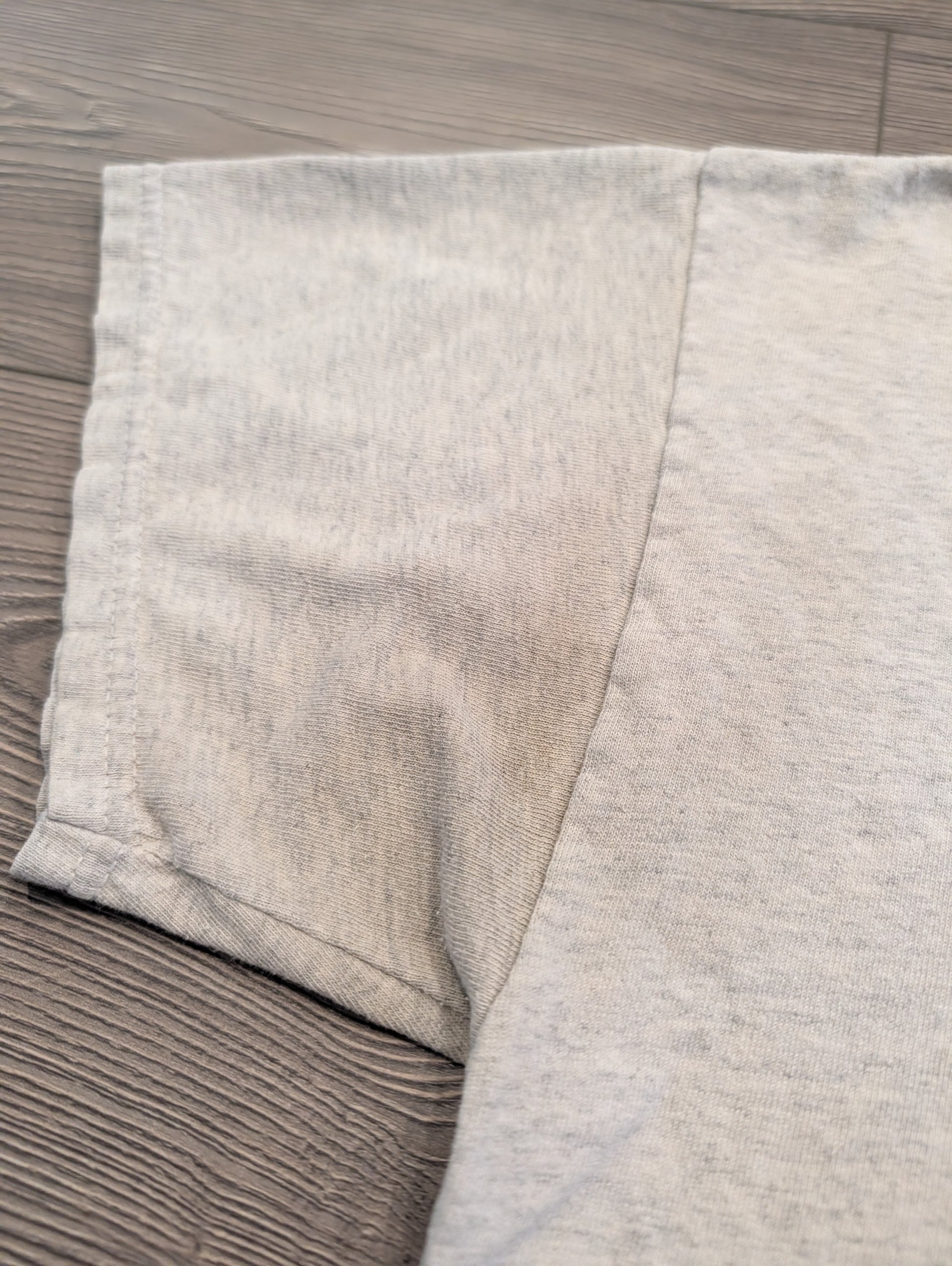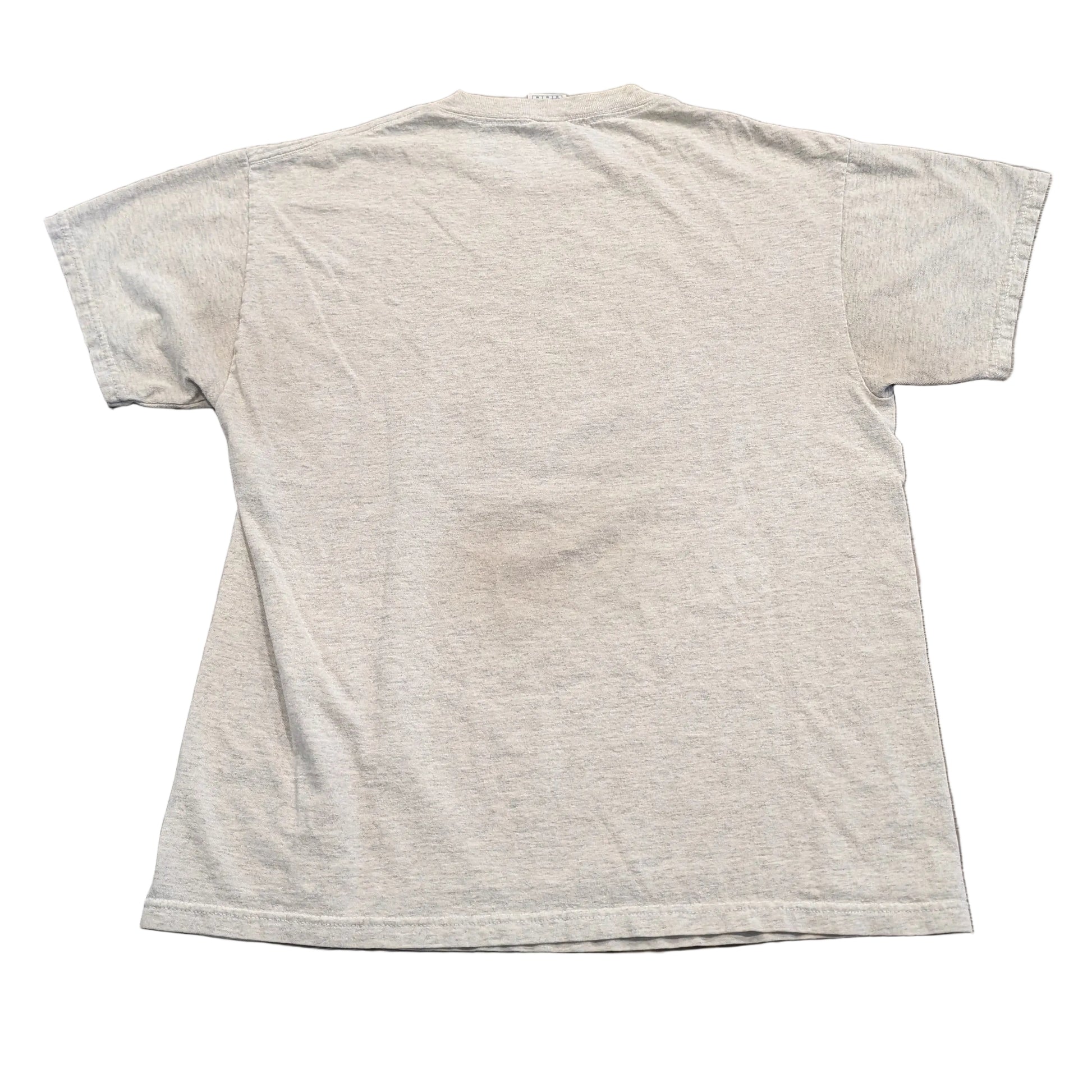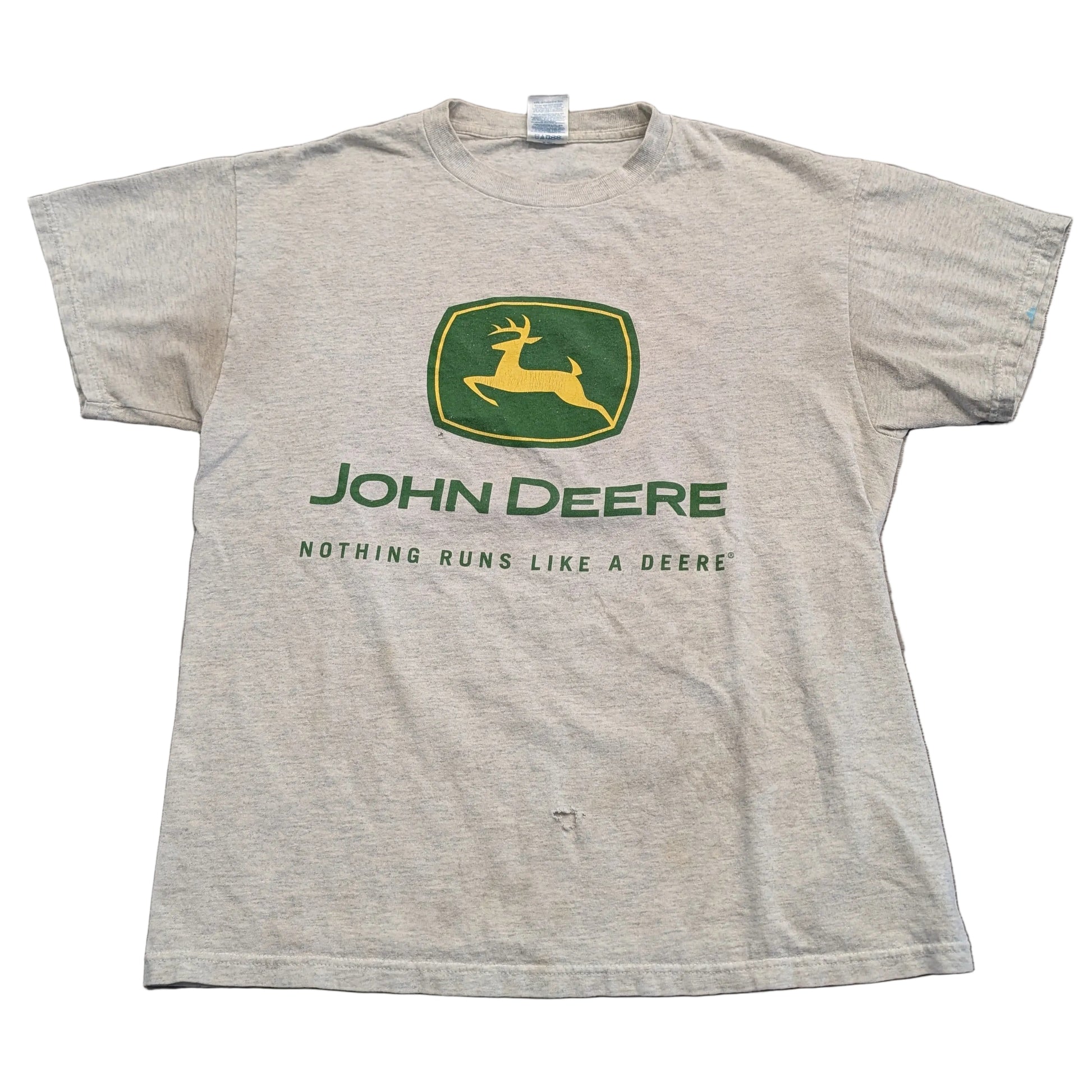 Description: Vintage Y2K John Deere Tractor T shirt, front graphic only, gray green and yellow, classic logo design, Nothing Runs Like Deere, Workwear, farming, outdoors