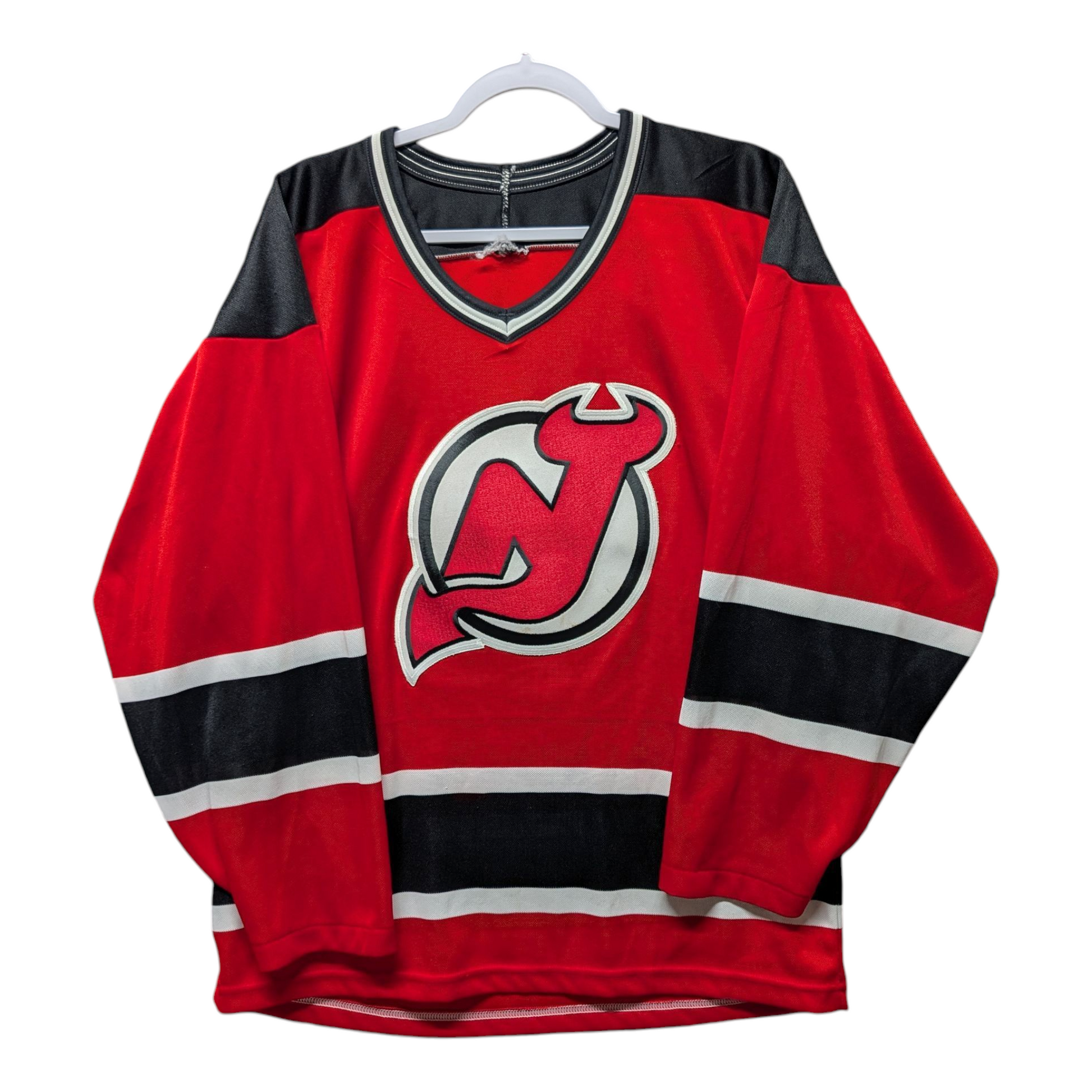 Description: Y2K New Jersey Devils NHL Hockey Jersey, Away kit, red black and white, big patch on the front, no name on the back, Sports, perfect for Fall and Winter Season, support your favorite team, CCM